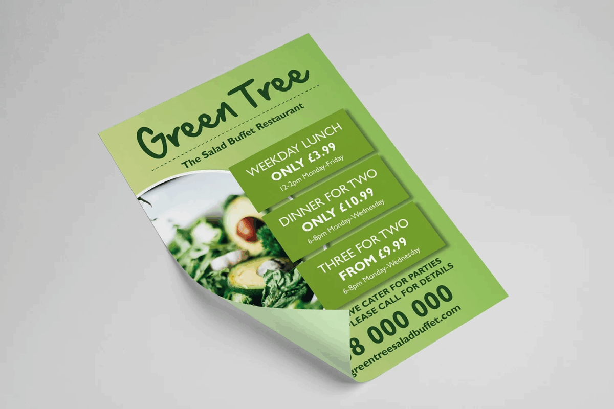 Thu hút ánh nhìn trong 3 giây đầu: khách hàng sẽ chỉ lướt qua tờ rơi nếu thiết kế quá cũ kỹ hoặc rối rắm.